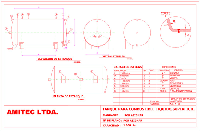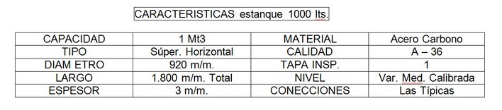 Estanque de acero galvanizado con contenedor de derrame para almacenamiento y transporte de combustible, fabricado de acuerdo a normas y estructurado de acuerdo al protocolo SEC-PC-103-1/94. Se entrega certificado, quedando inscrito en la SUPERINTENDENCIA DE ELECTRICIDAD Y COMBUSTIBLE (SEC).