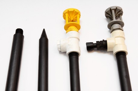 Aspersores mineros de ¾" ángulo bajo 360º, presión de trabajo: 0.75 a 3.5 bar, estacas mineras inyectada HDPE